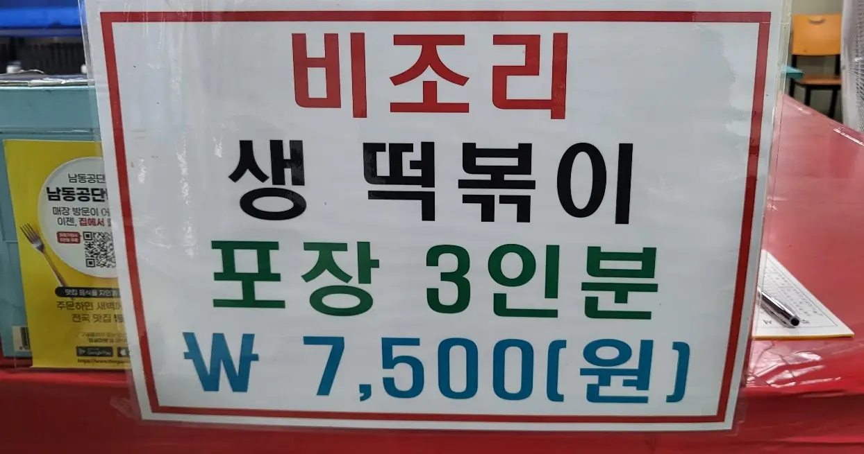 비조리 포장 떡볶이의 경우 3인분에 7,500원에 판매하며 조리된 떡볶이를 집으로 가져와 먹지 않아도 되고 비포장 떡볶이를 구매 후 냉동보관하여 언제든 남동공단 떡볶이의 맛을 즐길 수 있어 나름 훌륭한 아이템인 것 같습니다.