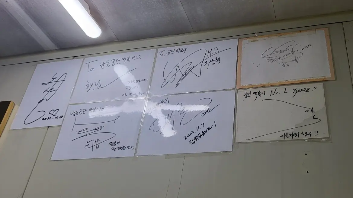 가게 안을 들어가 보면 언제든 먹을 수 있는 육수통과 정수기가 배치되어 있습니다. 벽면은 위에서 보셨든 각종 유명인 사인과 메뉴판이 조촐히 붙어있죠.