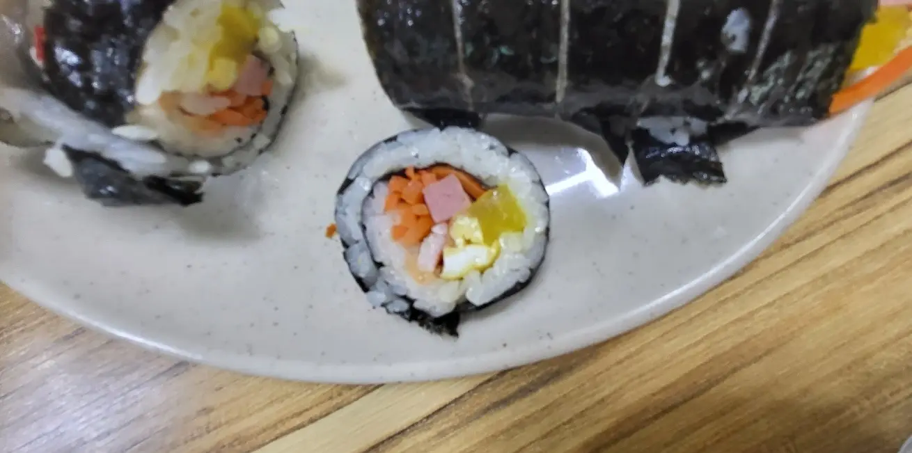 김밥 역시 재료라고는 당근과 햄, 단무지, 계란, 맛살 조금인데 이 맛이 정말 남다릅니다.