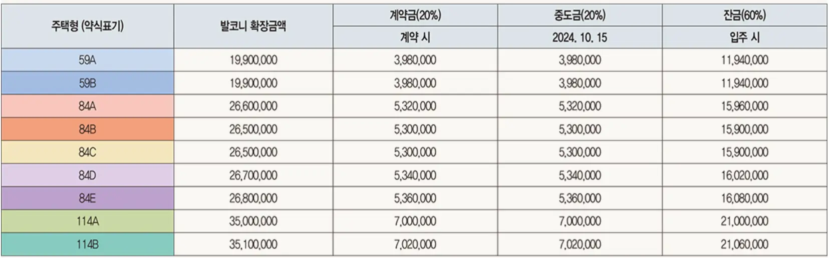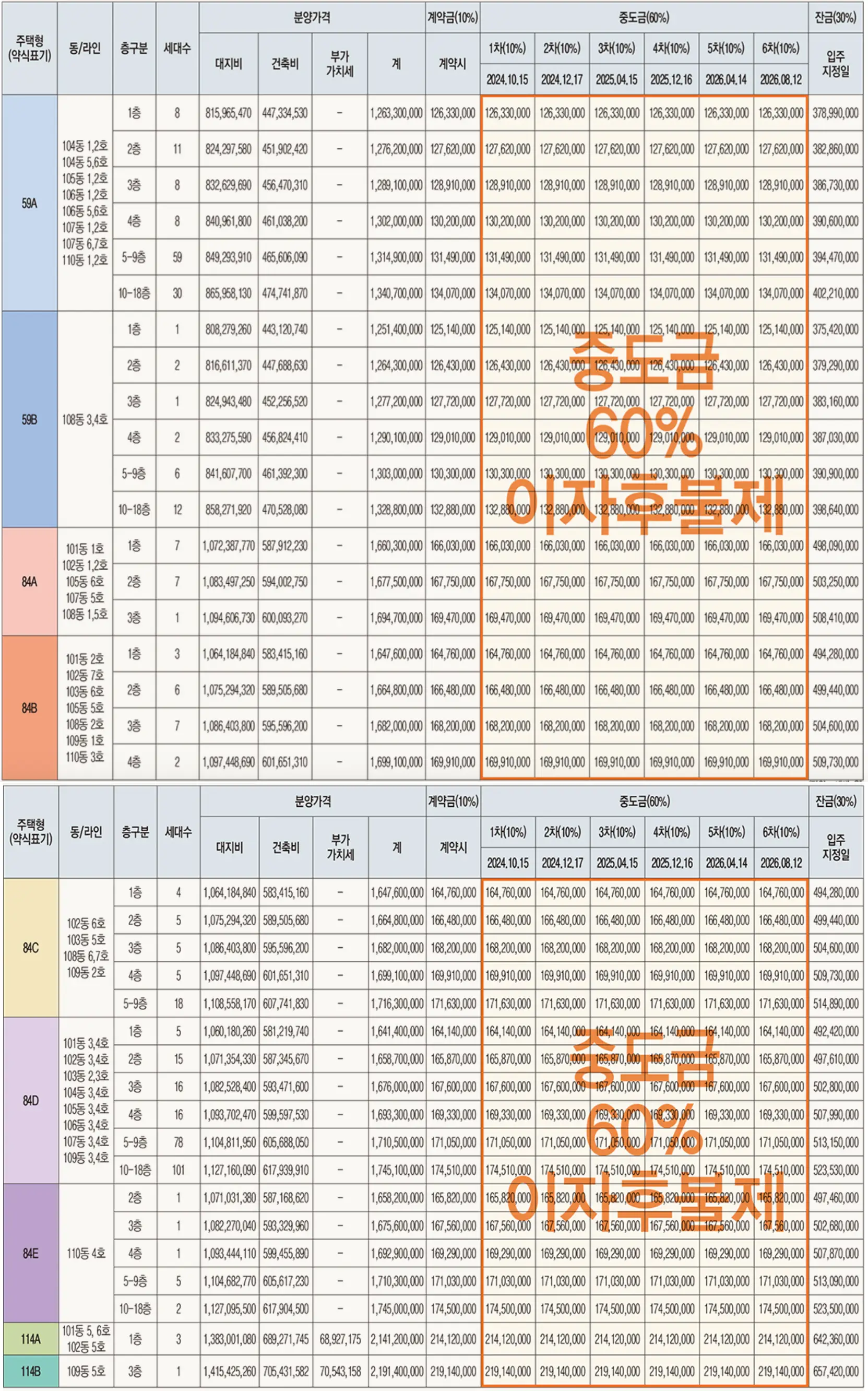| 84E | 16억5,820만원~17억4,500만원 | 2,680만원 |