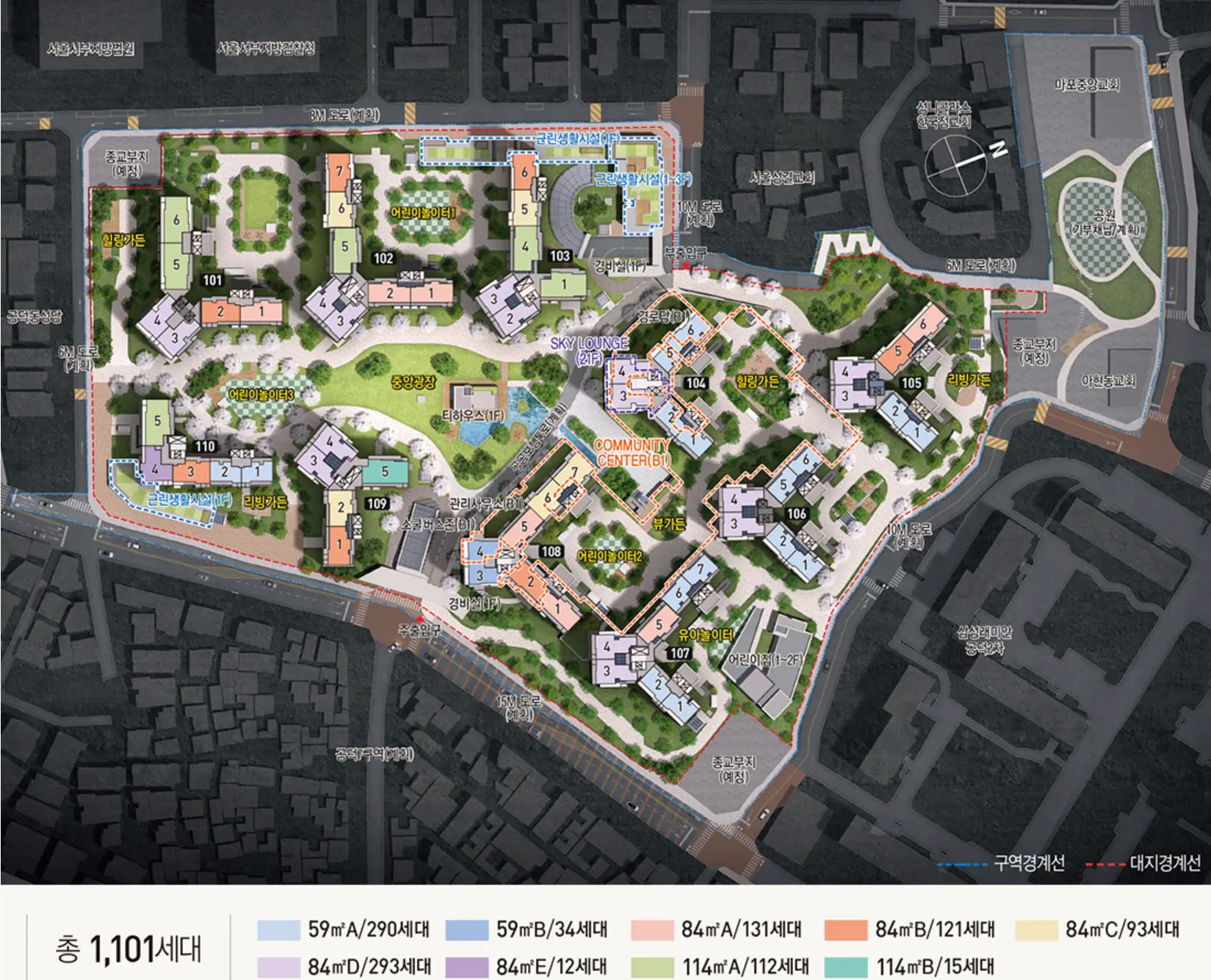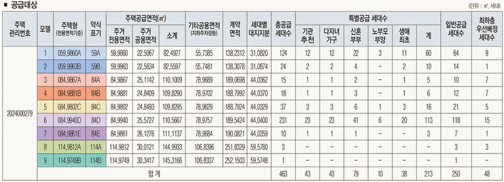 - 공급규모 : 총 1,101세대 중 463세대(특별공급 213세대 / 일반분양 250세대)