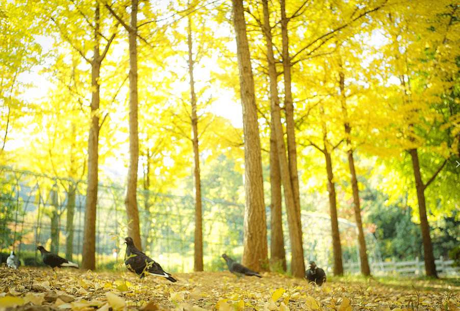 은행나무잎이 마치 푹신한 이불처럼 공원전체를 덮어주는 원적산공원은 숲 가득 노란빛의 은행나무가 장관을 이룹니다. 노랗게 옷을 갈아입은 듯 은행나무 잎이 쌓인 숲길을 걷노라면 자박자박 밟히는 은행잎소리가 가을의 정감을 즐기기에 아쉬움이 없는 시간을 만들어줍니다.