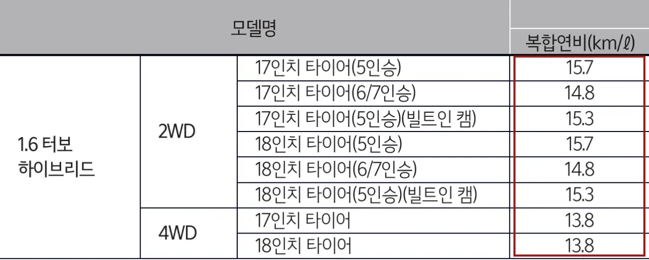 쏘렌토 하이브리드의 모델에 따라 연비는 13.8~15.7km/l까지 다양하게 분포하고 있으며 4륜보다는 2륜이 18인치 타이어보다는 17인치 타이어를 장착한 경우 더 높은 연비를 냅니다.