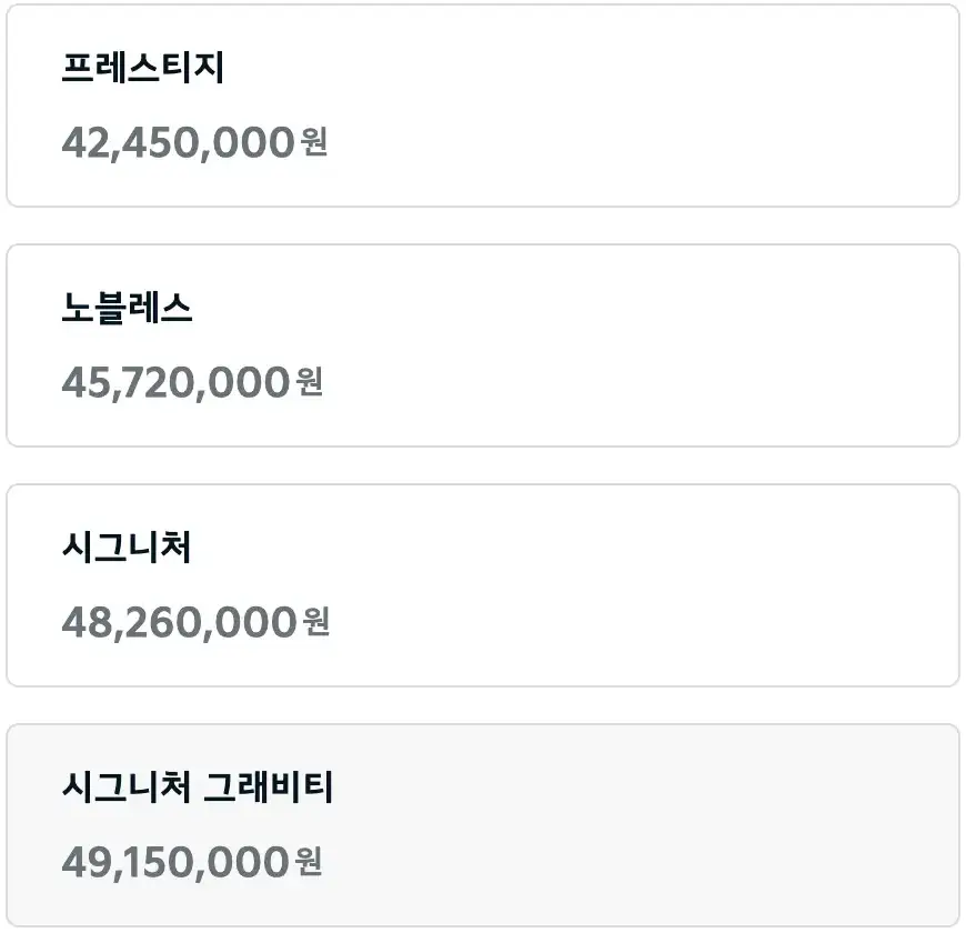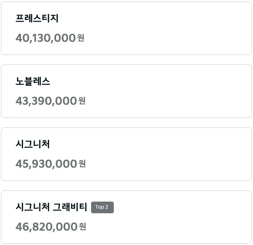 좀 더 다양한 옵션사양과 가격확인을 원하신다면 아래의 가격표를 확인하시기 바랍니다.