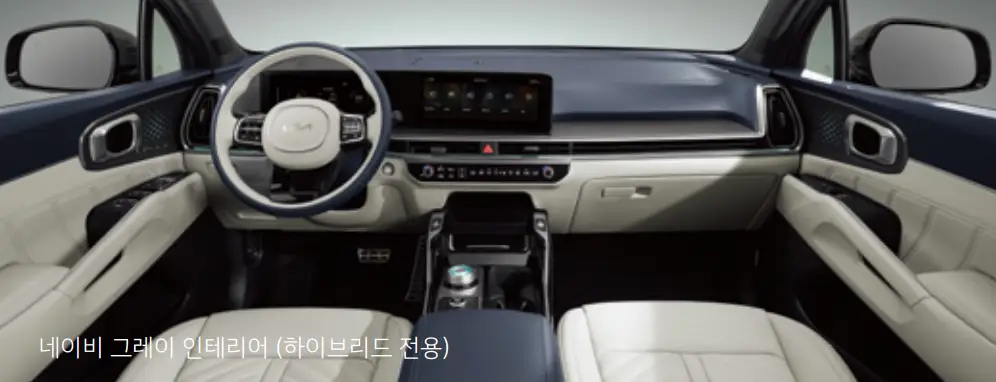 내장 인테리어는 올리브 브라운과 네이비 그레이 두 가지 색상으로 선택할 수 있습니다.