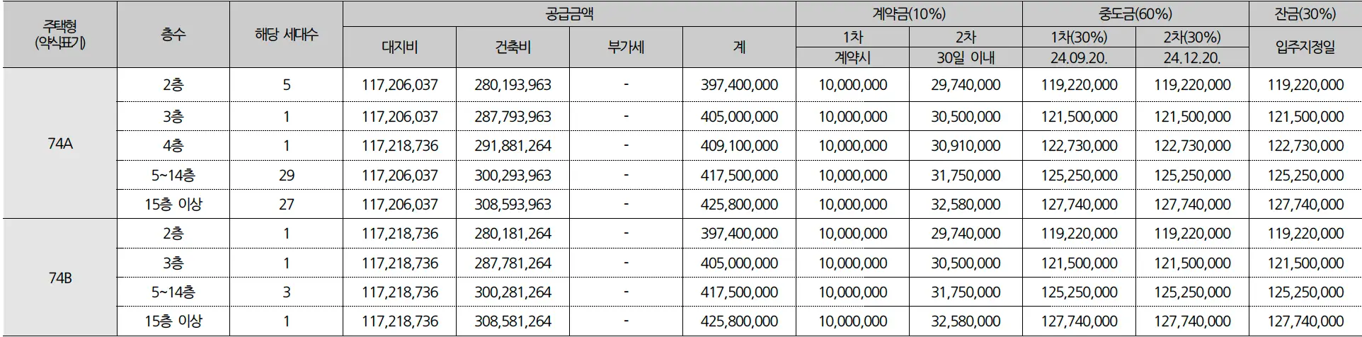 74B 3억9,740만원 ~ 4억2,580만원 5백565천원