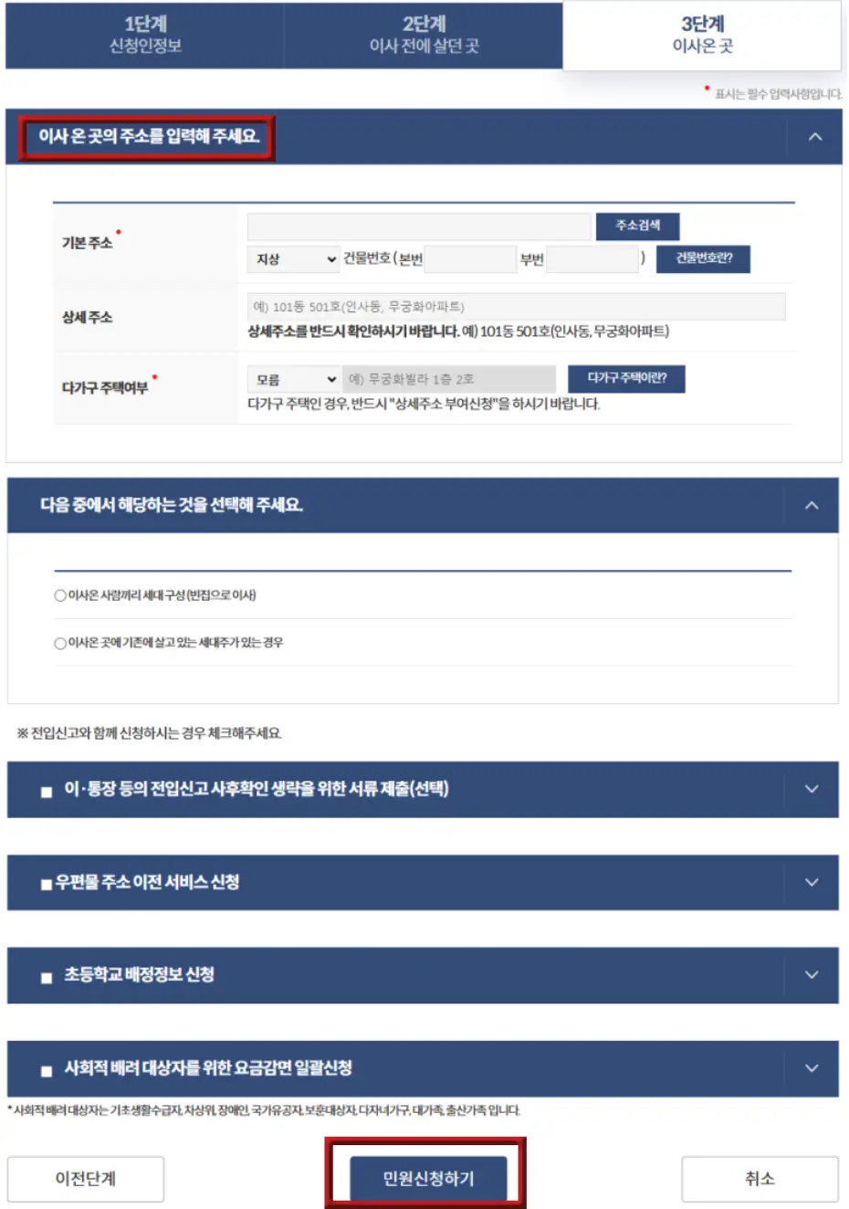 4단계 전입지 주소 입력