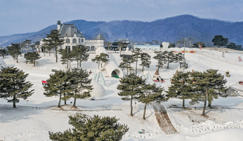 눈썰매장, 산림욕장, 점핑파크 등 다양한 놀이시설과 휴양시설로 설경 속 깊은 휴식은 덤으로 받을 수 있는 곳입니다.