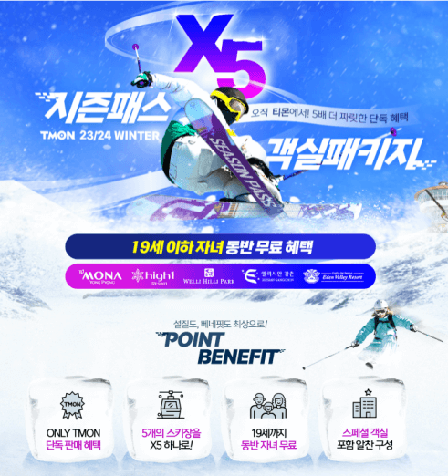 ✅ 용평, 하이원, 웰리힐리, 엘리시아 강촌, 에덴밸리 등 총 5개의 스키장을 2024년 폐장까지 무제한 이용