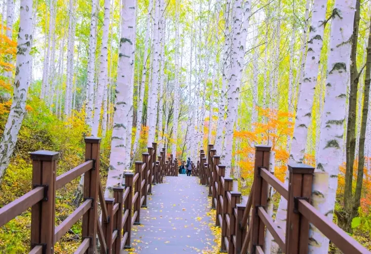 비교적 완만한 경사로 편도 50분 정도 소요되는 트래킹코스입니다. 온대지역에서는 보기 힘든 나무인 자작나무가 숲으로 조성되어 있어 이국적인 멋과 마음에 여유를 주기 충분한 장소입니다.