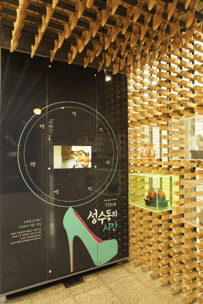 바늘 가는 데 실이 따라가듯이 수제화 장인들이 모이자 그들을 따라 가공업체와 판매업체들이 모이면서 현재 350여 개의 수제화와 관련된 사람들이 모이게 되고 그들의 미적감각과 성수동을 사랑하는 마음이 지금의 독특하고 이색적은 그들만의 문화를 만든 장소입니다.
