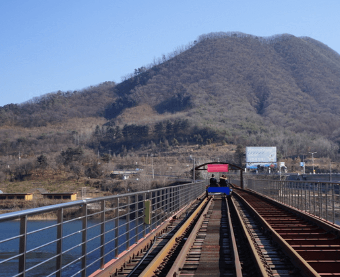 가평레일바이크는 가평역에서부터 시작합니다. 북한강 철교를 거슬러 가며 계절계절 새로운 자연의 경관을 선물하는 가평레일바이크는 예전 영화'편지의 촬영장으로도 유명합니다.