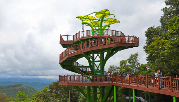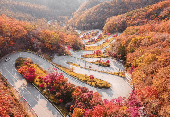 바로 보은 말티재 전망대인데요 전망대에 오르면 굽이굽이 이어진 12 고갯길 사이사이 어우러진 단풍의 절경을 즐길 수 있습니다.